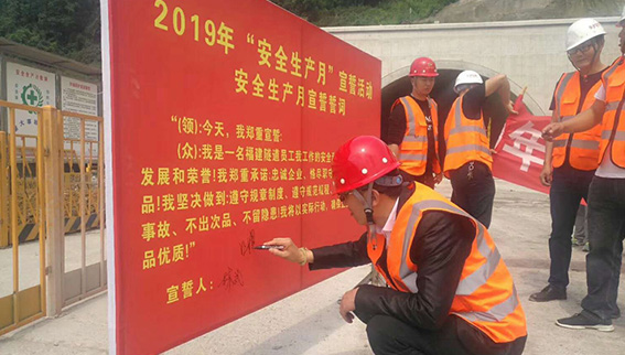 宣誓结束后,项目部员工与一线施工人员在安全宣传专栏上进行了郑重的签名承诺活动,大家决心以实际行动把安全生产各项规章制度落实到施工生产中,确保“安全生产月”活动扎实开展。
