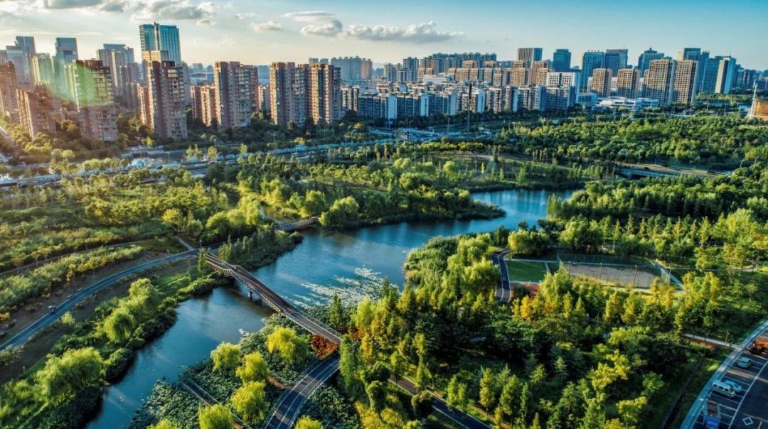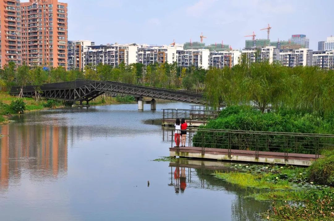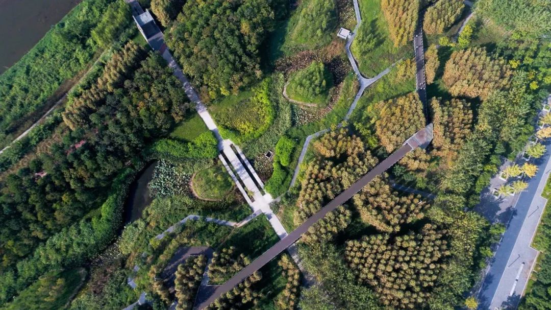 融合在都市肌理中的绿色生态廊道,凸显现代化新城的江南水乡特色。